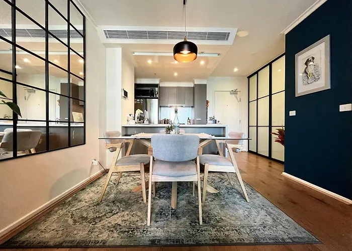 이 숙소는 슈라인 오브 리멤버랜스에서 차로 5분 이내의 거리에 있습니다. 일본 식사를 제공하는 Nobu Melbourne Crown Casino은 450미터 내에 자리 잡고 있습니다. 이 Luxury 2Br Apartment, Pool, Gym & Free Parking에서 유레카 타워까지 가깝습니다.